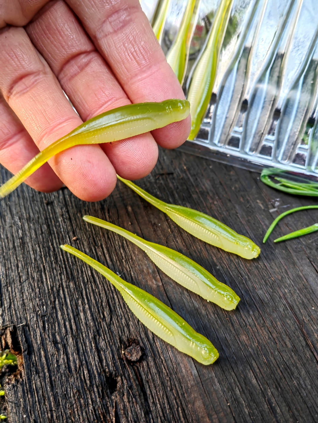 Może być również używana jako FFS Minnow (forward-facing sonar), a także prezentowana na główkach typu Ned Rig czy na trójkątnych jigach.