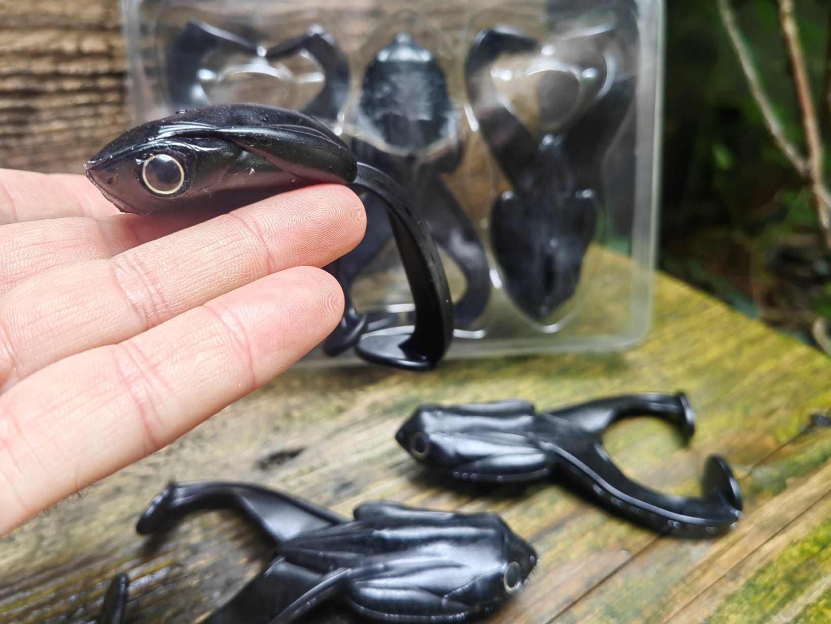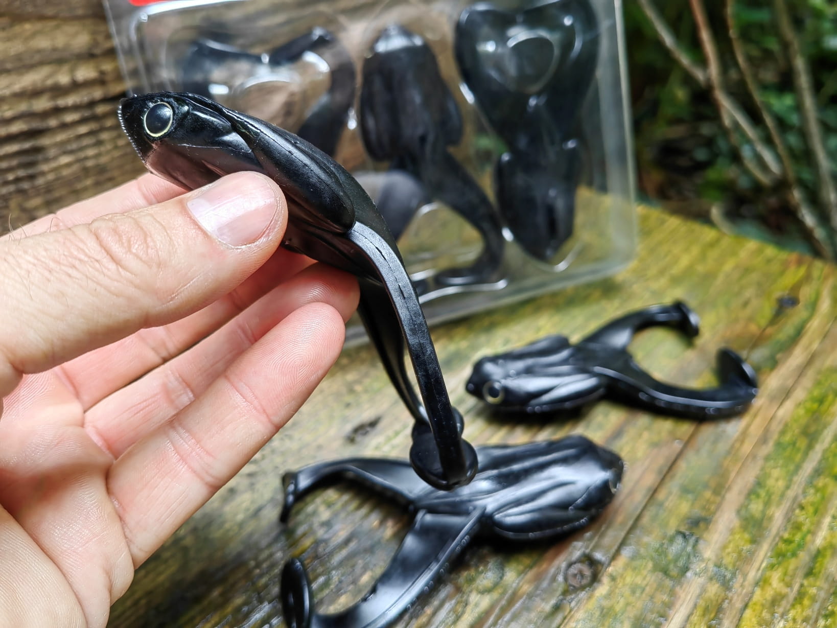 Rewelacyjna. pływająca imitacja żaby. Zaprojektowana w ten sposób aby łączyć zalety przynęt twardych oraz miękkich. Mimo dużej wagi. stabilnie unosi się na wodzie. nawet po uzbrojeniu w duży hak ofsetowy. Specjalnie zaprojektowane komory powietrzne zapewniają prawidłową pozycję przynęty w każdej sytuacji. Odpowiednio wyprofilowane "żabie nogi" odpowiadają za intensywną i wyjątkową pracę przynęty.
