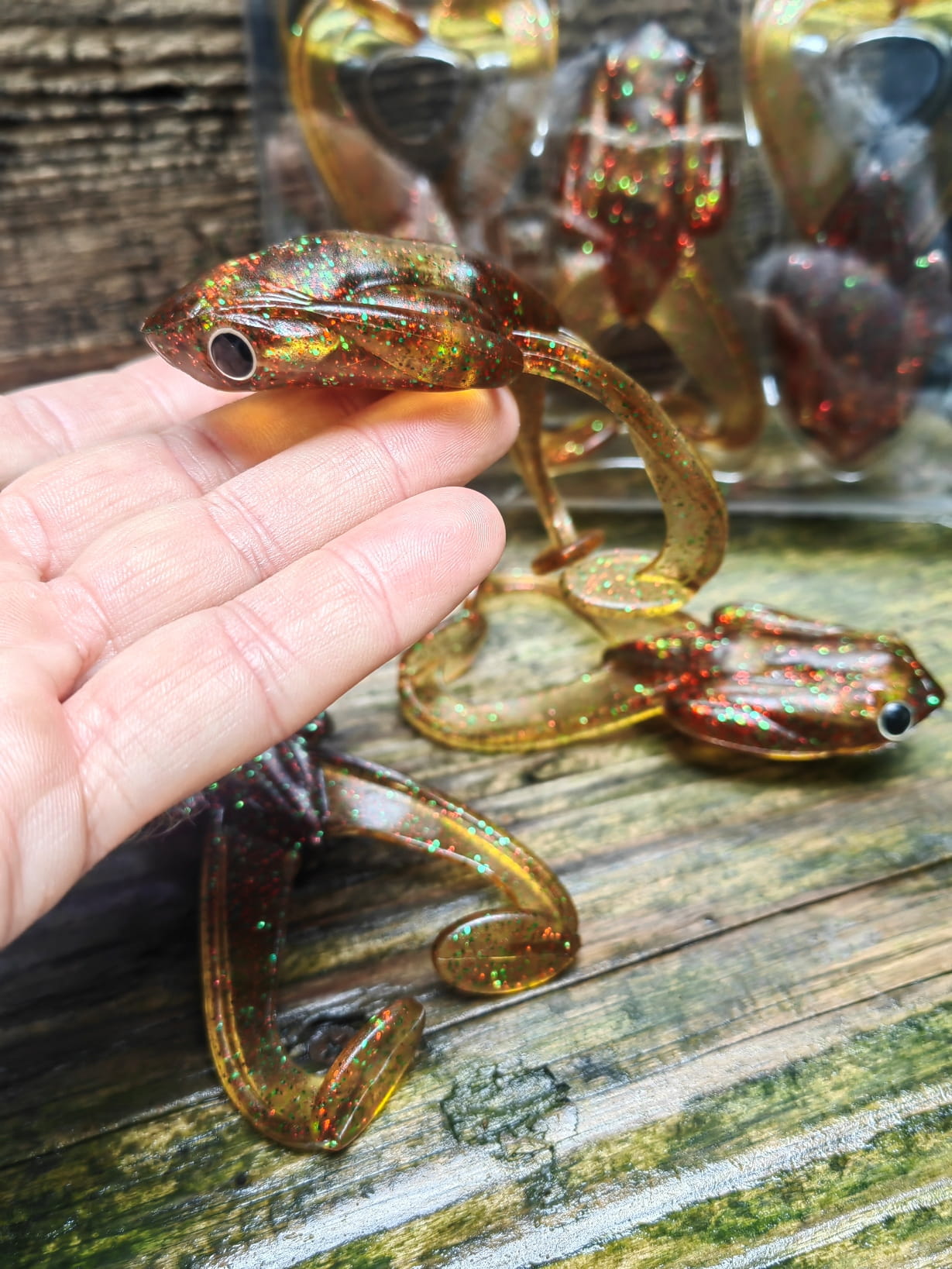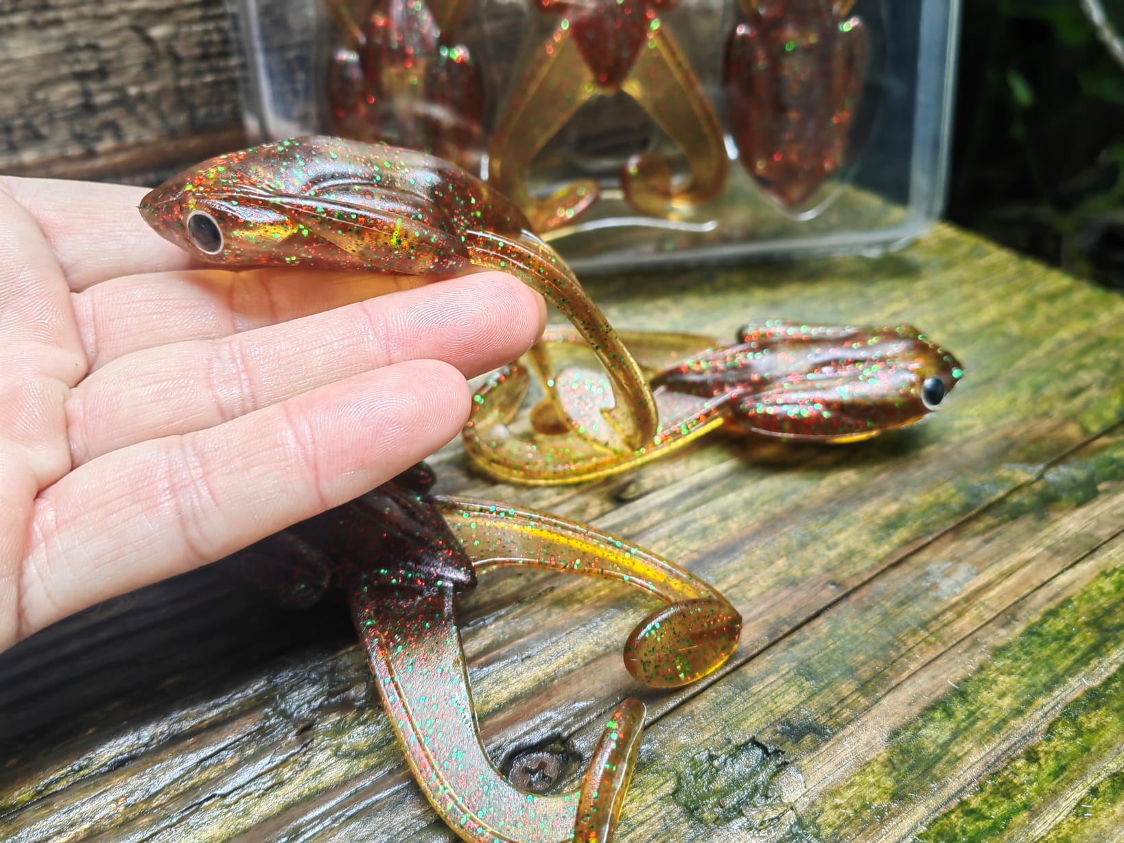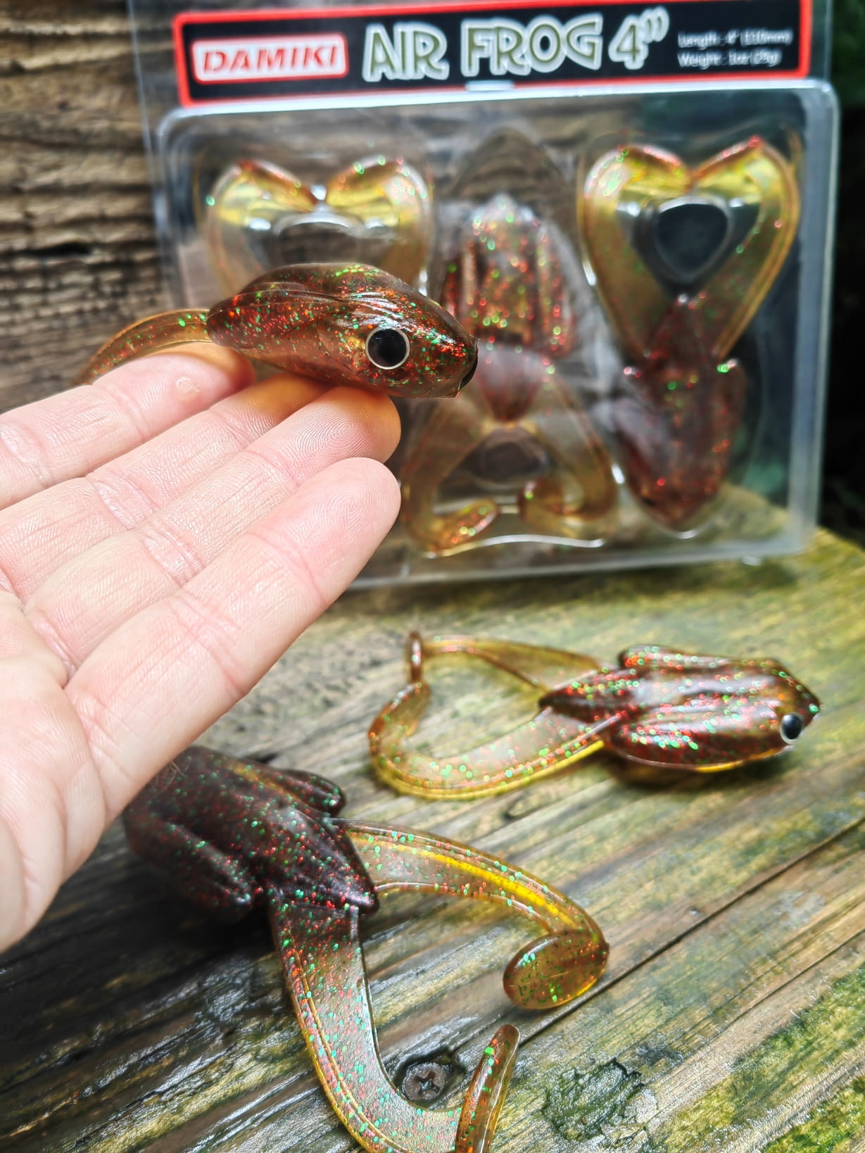 Rewelacyjna. pływająca imitacja żaby. Zaprojektowana w ten sposób aby łączyć zalety przynęt twardych oraz miękkich. Mimo dużej wagi. stabilnie unosi się na wodzie. nawet po uzbrojeniu w duży hak ofsetowy. Specjalnie zaprojektowane komory powietrzne zapewniają prawidłową pozycję przynęty w każdej sytuacji. Odpowiednio wyprofilowane "żabie nogi" odpowiadają za intensywną i wyjątkową pracę przynęty.