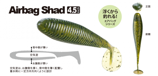 Duża pływająca przynęta z ogonkiem w wersji Shad. Unosi się na powierzchni nawet po uzbrojeniu w hak offsetowy wielkości 5/0!