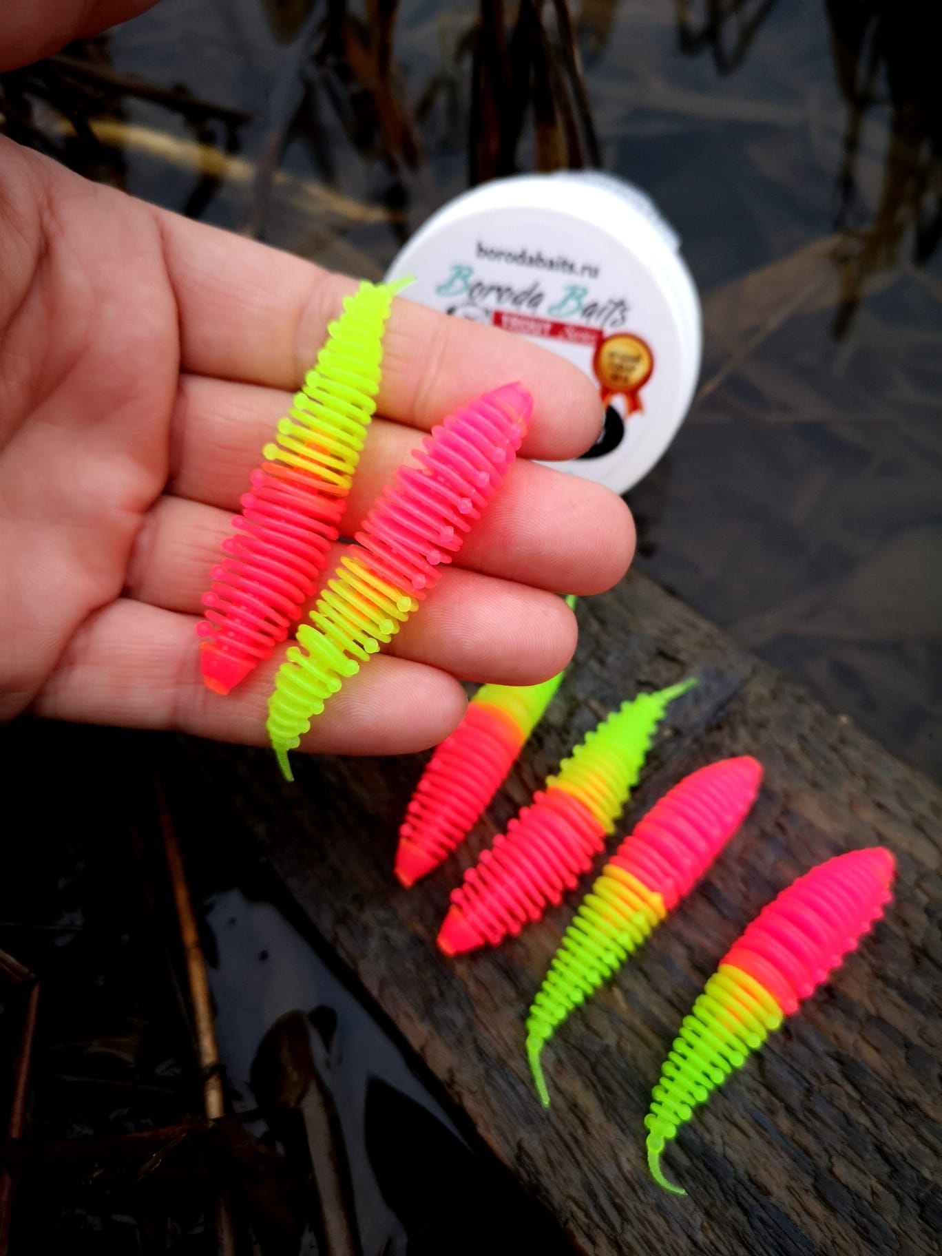 Zamoczone w atraktorze o zapachu / ser / czosnek / Bouble Gum / sprawiają że ta przynęta znajduje się w topowej piątce przynęt na świecie, co potwierdzają liczne wyróżnienia na targach wędkarskich.
