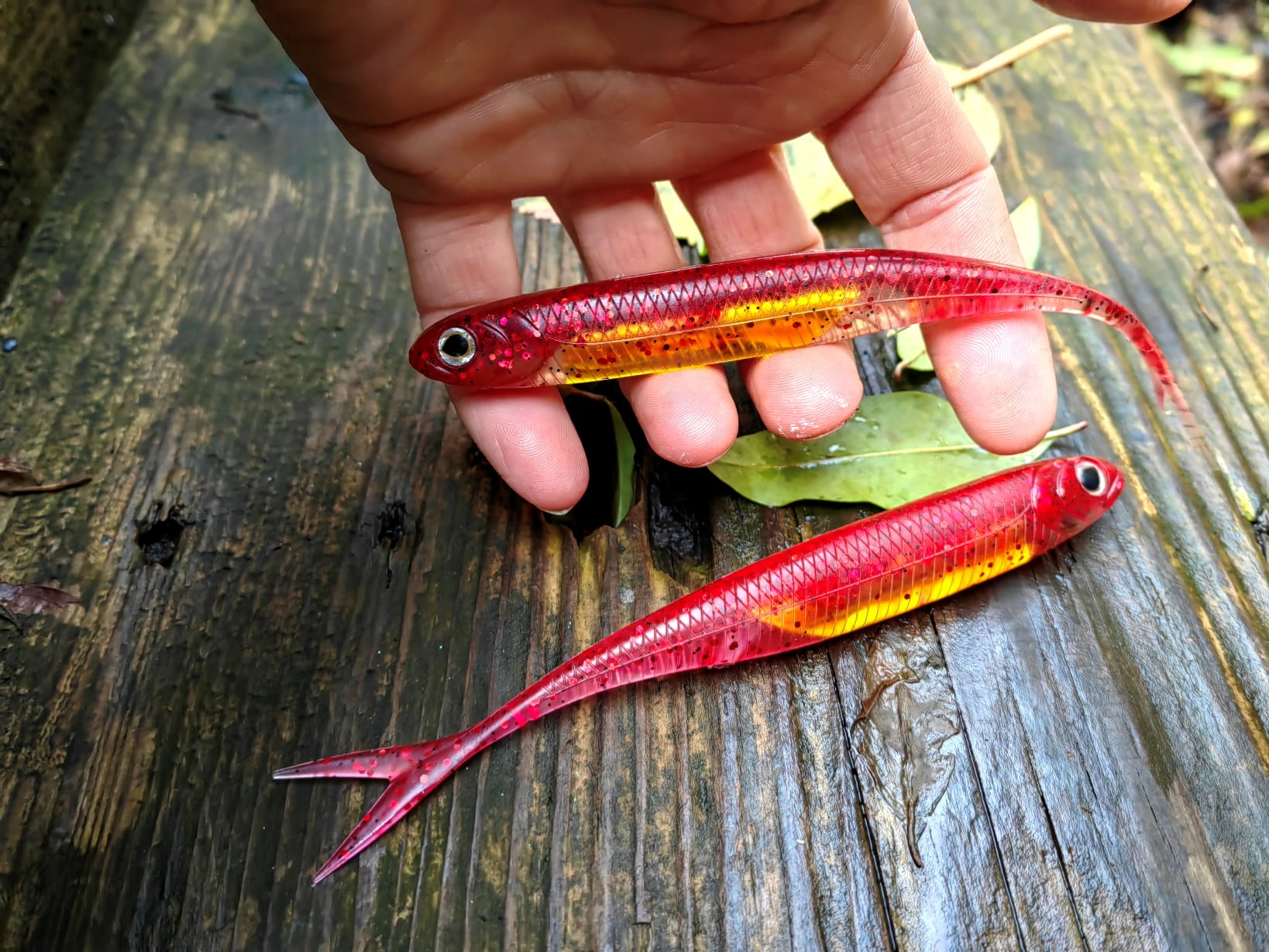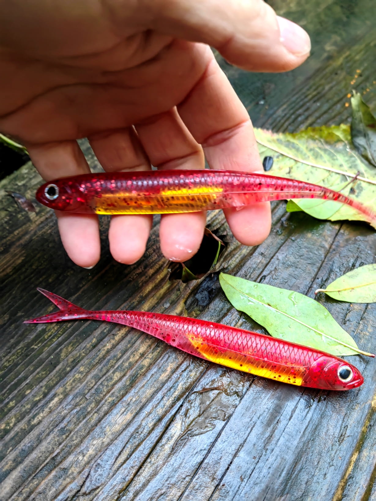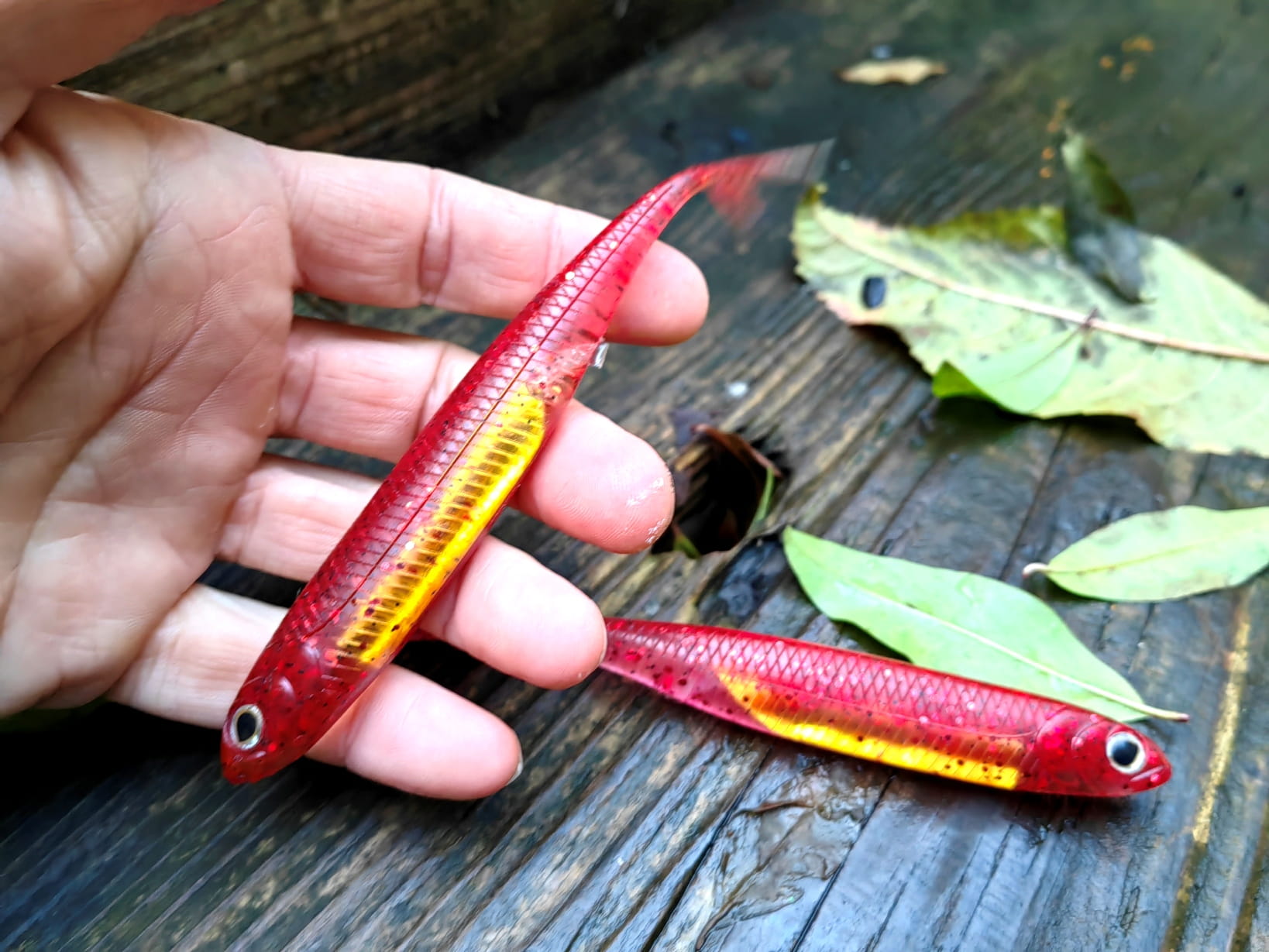 Realistyczne odwzorowanie ryby. Rozwidlony ogonek pracuje nawet przy najmniejszym ruchu przynęty. Umieszczony w jej wnętrzu materiał imituje błysk uciekającej ofiary prowokując drapieżnika do ataku.