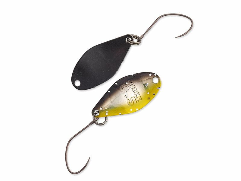 Błystki pstrągowe Masukuroto Ghee firmy NORIES oparte są na modelu Weeper i charakteryzują się typową mocną pracą. ale bez zbytniego unoszenia w kierunku powierzchni wody. Dzięki temu Ghee utrzymuje swoją głębokość podczas prowadzenia i można łowić pstrągi w zależności od głebokości na akturej aktualnie znajdują się ryby. Wersja 0.9 g Ghee jest idealna do łowienia pstrągów na małej oraz średniej głębokości. kusząc je powolnym prowadzeniem i podczas fazy tonięcia. a także mocną akcją.