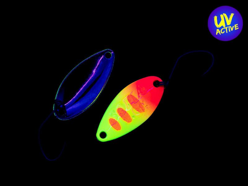 System malowania CHIRARI. z nieregularnymi kolorami na rewersie przynęty. wizualnie pobudza pstrągi do brania.