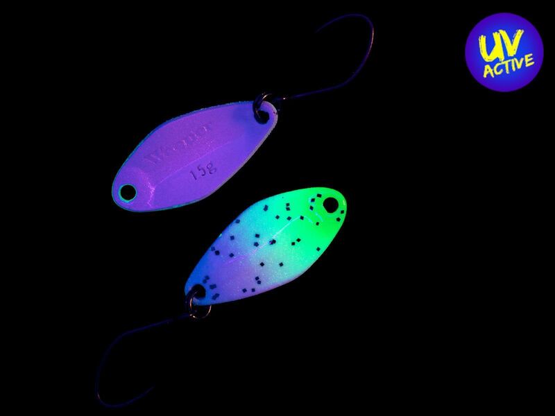 System malowania CHIRARI. z nieregularnymi kolorami na rewersie przynęty. wizualnie pobudza pstrągi do brania.