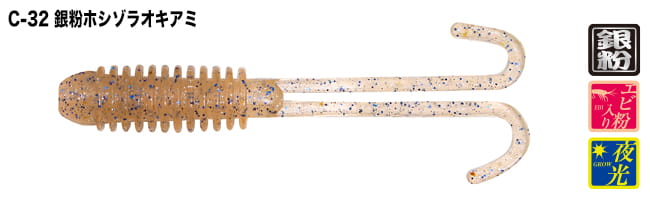 Przynęta należąca do rodziny USB (ultra softmaterials baits) - czyli wykonana z bardzo miękkich materiałów. Przeznaczona do lekkiego oraz ultra lekkiego spinningu. Korpus pierścienia z głębokimi żebrami nadaje mu wygląd, a podwójne, kręcone, podwójne ogony pływają jak mieszająca się woda, zachęcając do akcji „peek-a-boo”!