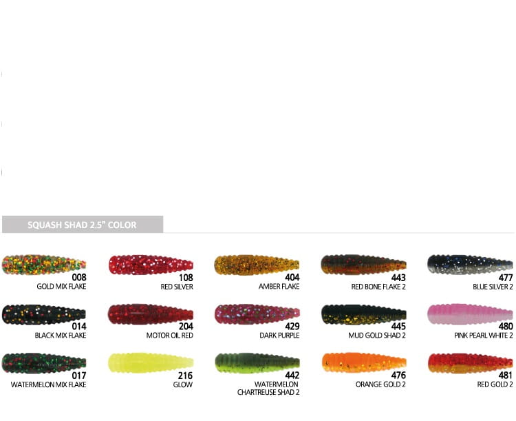 SQUASH SHAD to nowy wymiar ultra miękkiej przynęty gumowej na pstrągi i okonie. Płaski ogon z nadaje przynęcie niesamowitą pracę oraz wibrację. Dzięki zastosowaniu bardzo sprężystego materiału oraz kształtu korpusu w połączeniu unikalnym kształtem ogonka otwiera wodę nawet w ciepłe dni.